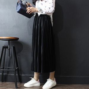 滑らかな光沢で上品さを演出するサテン生地のロング丈プリーツスカート