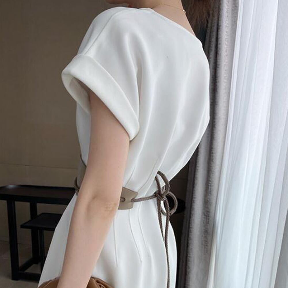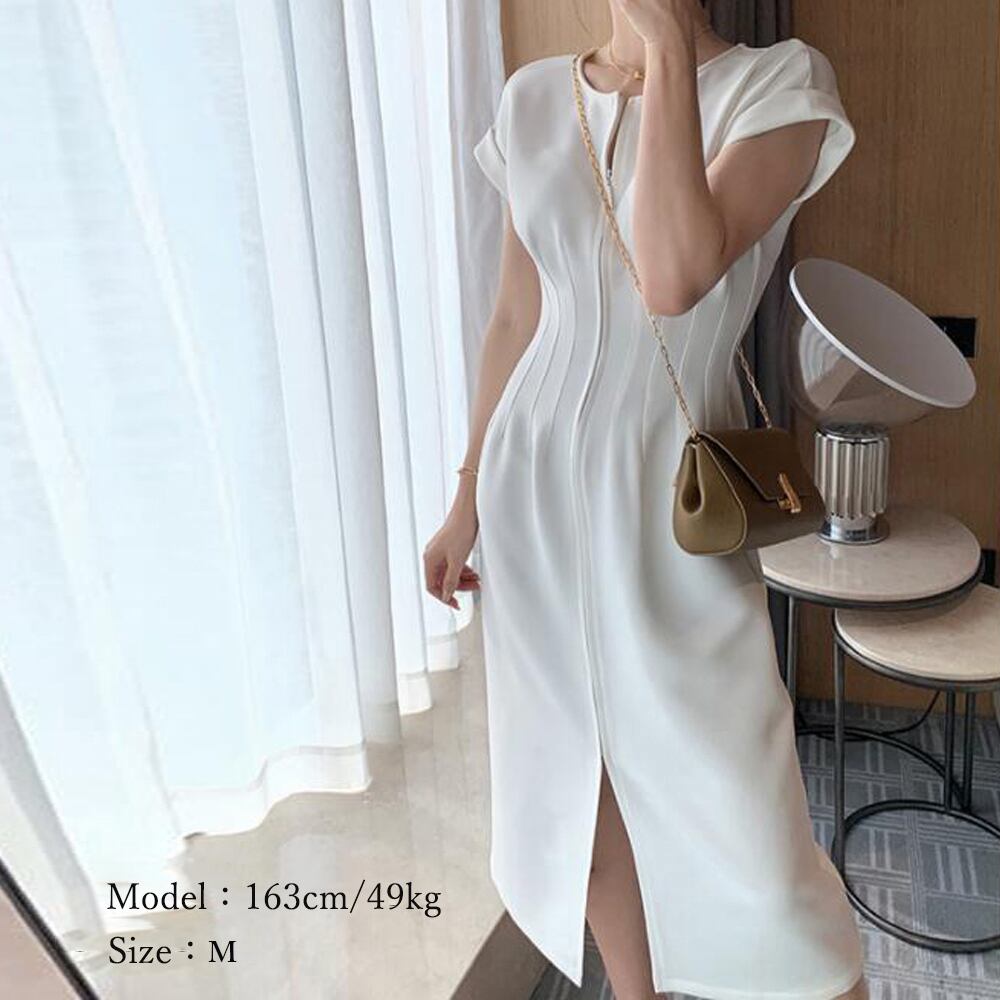韓国 ファッション ワンピース レディース きれいめ ウエストタック スリット ワンピース セクシー きれいめ ワンピース春夏30代 タックワンピース フレンチスリーブ