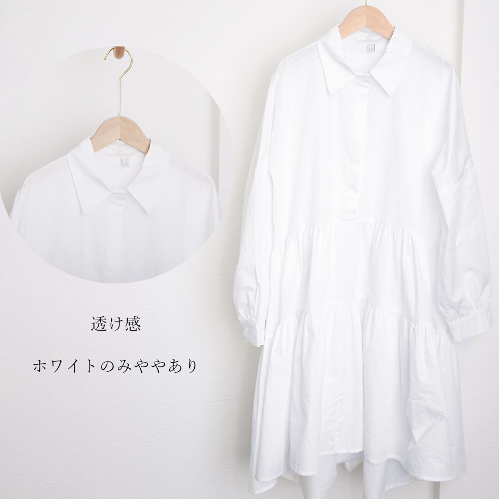 ロング丈シャツ ティアード シャツワンピ長袖 フレアワンピース カジュアル 韓国風 ゆったりシルエット ホワイトドレス ワンピース 春秋夏