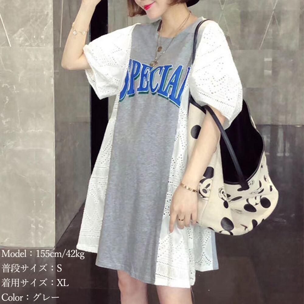 ゆったり ワンピ レースワンピース ロングtシャツ大人