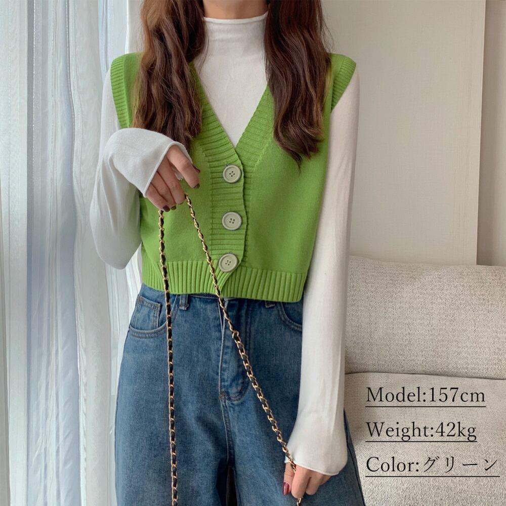 コンパクトベスト レディース ニット 秋冬 ノースリーブ ボタン 重ね着 カジュアル