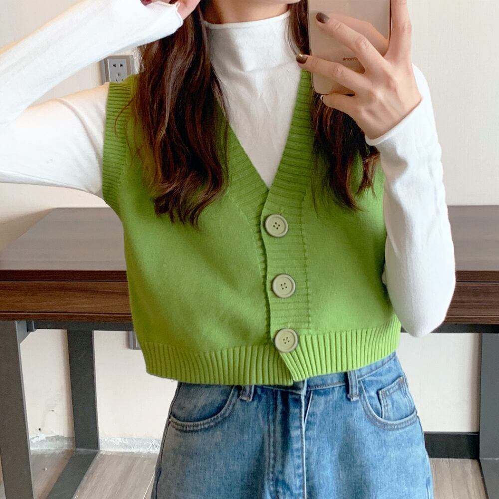 ニットベスト 前開き Vネックトップス