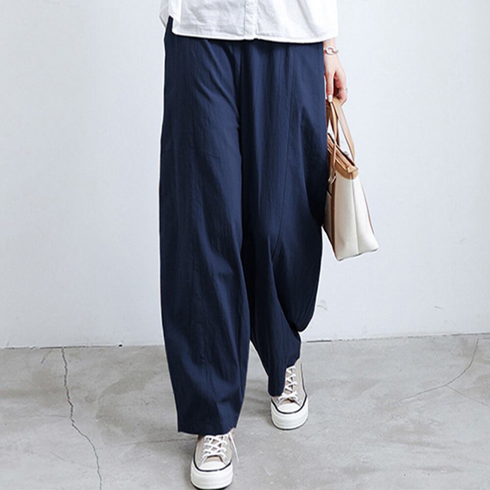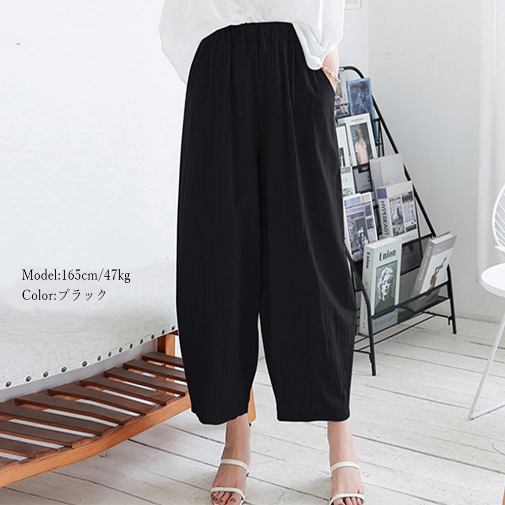 綿麻パンツ 春秋 ハイウエスト ウエストゴム レディース シンプル シルエット 通学