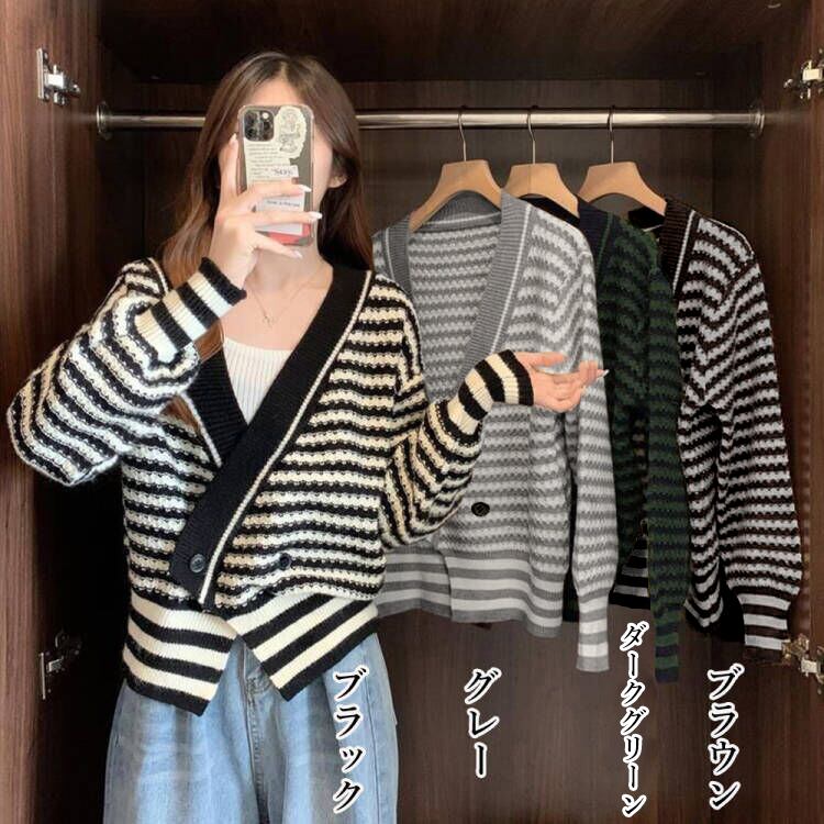 ニットカーディガン ボーダー柄 秋冬新作
