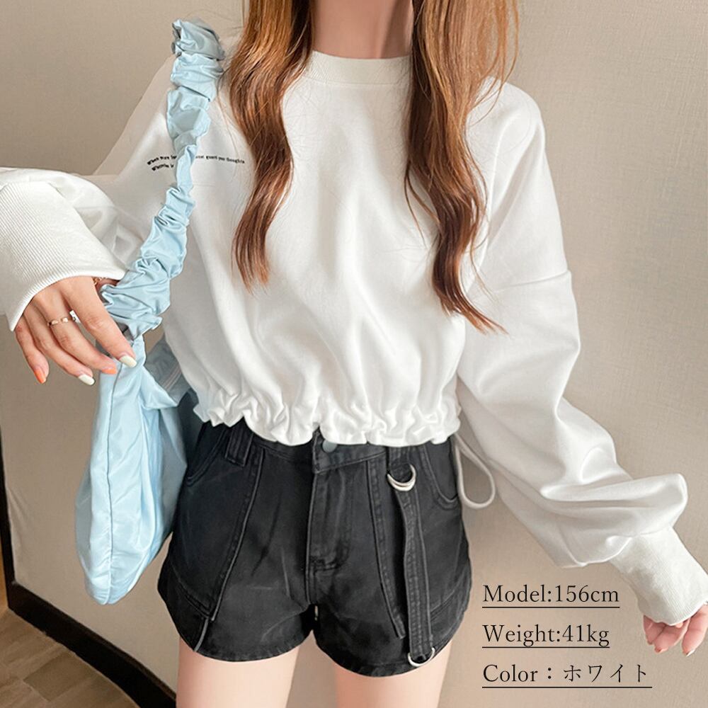 カットソー 春秋冬 ショート丈 Tシャツ クルーネック 韓国ファッション カジュアル