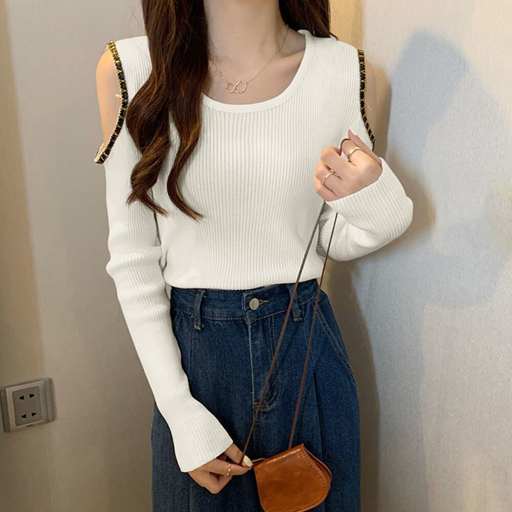 ニットトップス レディース 肩出し長袖
