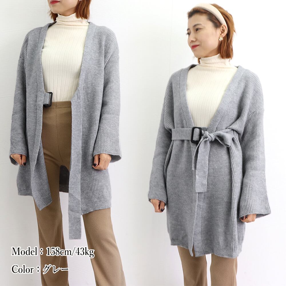 女性らしい綺麗なシルエットを演出してくれるベルト付きニットカーディガン。