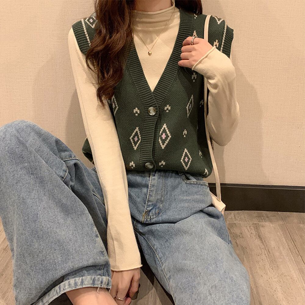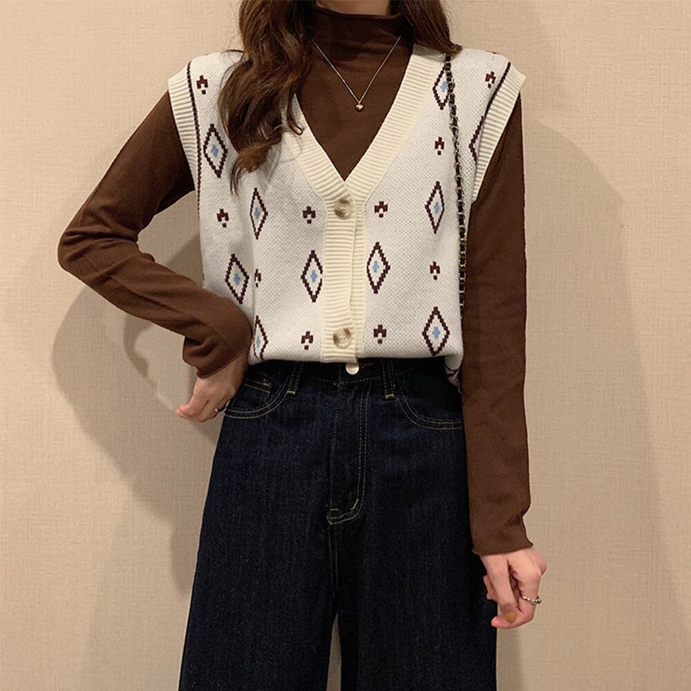 Vネック ノースリーブ レトロ カジュアル 韓国風 通勤 着やせ 春秋冬