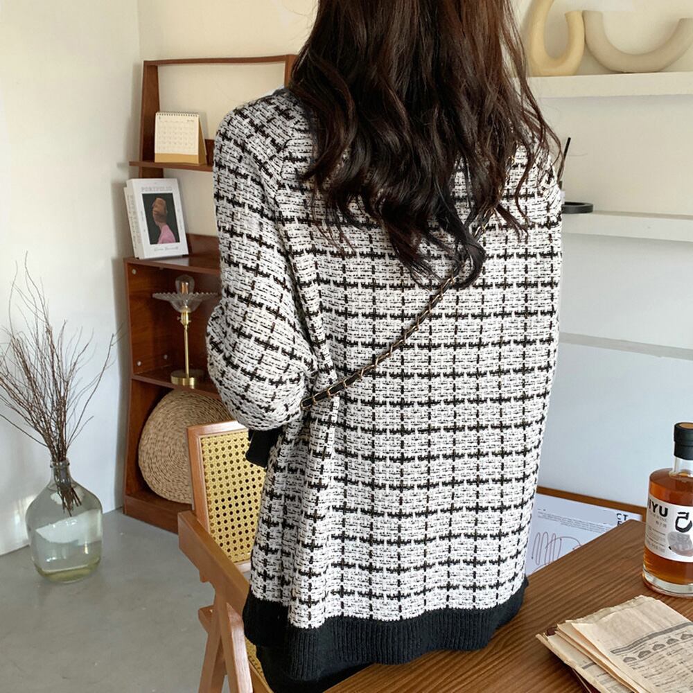 ツイード風ニットカーディガン 長袖 秋冬