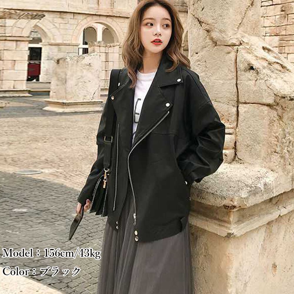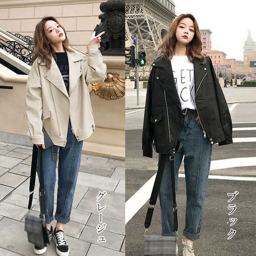 PUレザー ジャケット 着やせ カッコいい 革ジャン 韓国 合皮 バイカージャンパー ストリート カジュアル アウター 秋冬