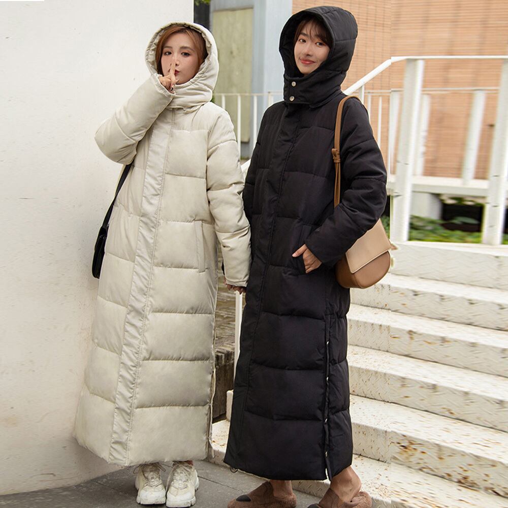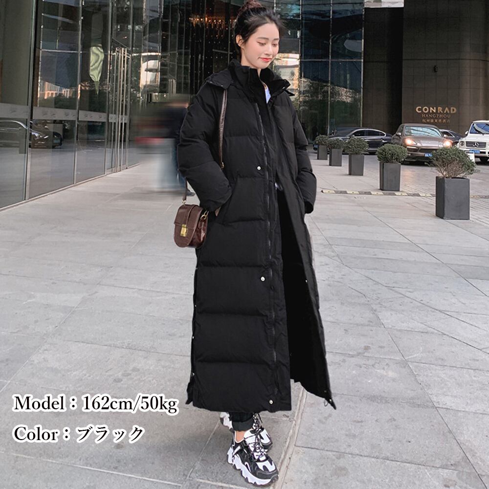 中綿入り ロングコート 韓国 ファッション 軽い 暖かい アウター 秋冬 サイドスリット マキシコート ゆったり 長袖
