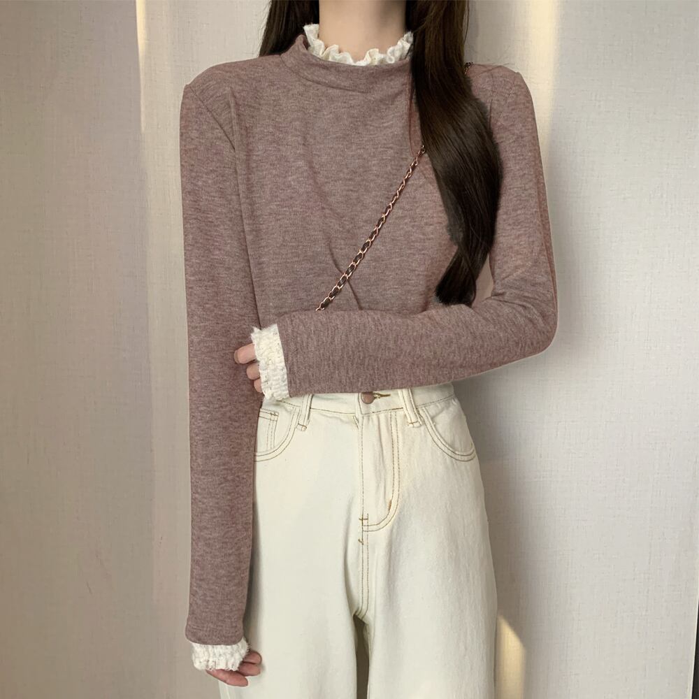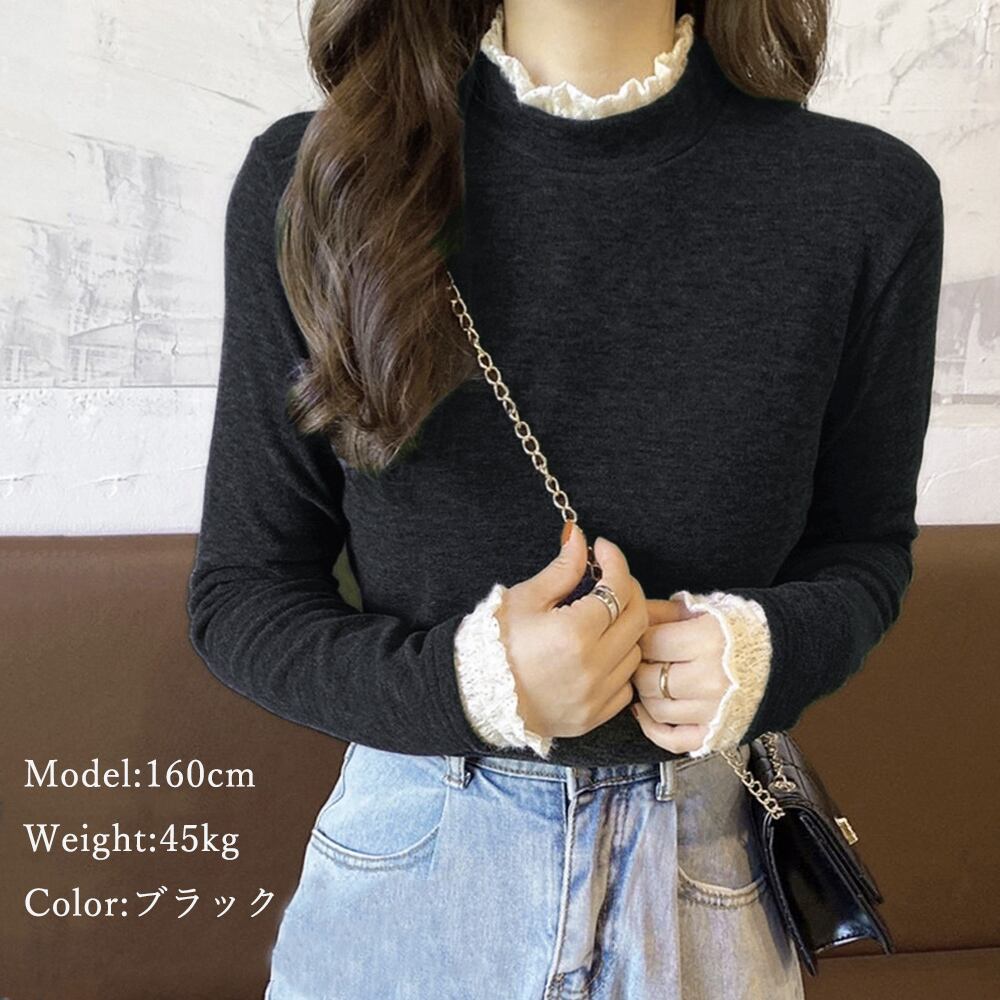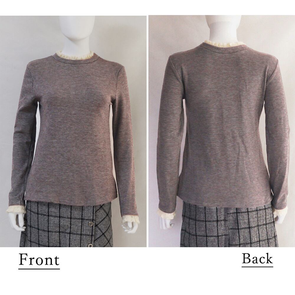 襟と手元にレースの切り替えが可愛らしい印象のトップス