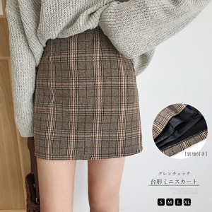 ウールタッチ生地で肌寒い冬でも可愛くあったか、秋冬定番のグレンチェック柄のミニ丈タイトスカート
