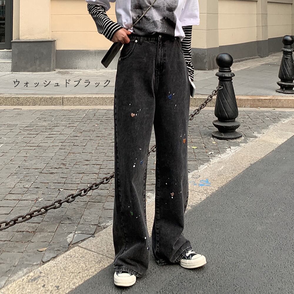 スプラッシュペインティングでかわいいデザインのデニムパンツです。
