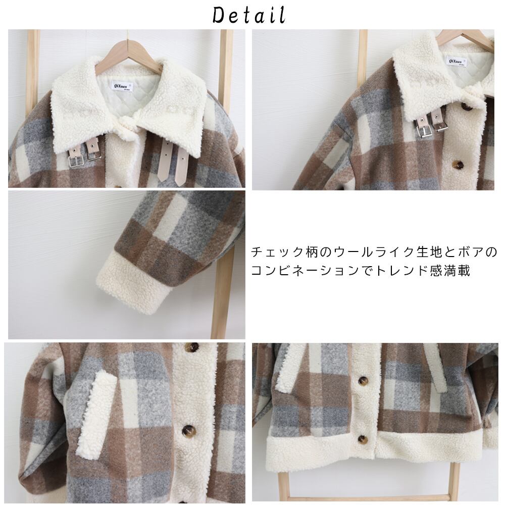 チェック柄のウールライク生地とボアのコンビネーションでトレンド感満載のレディースジャケット