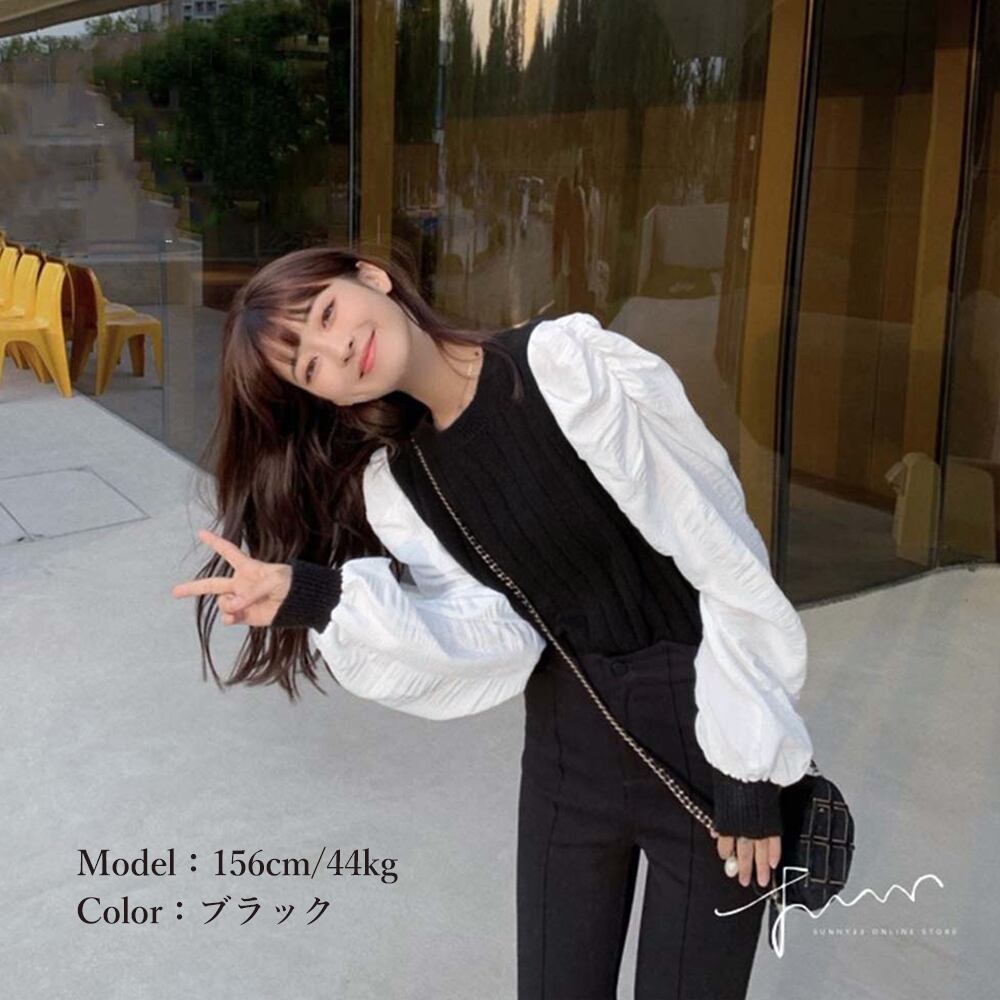 重ね着風 ブラウス 袖切替トップス 韓国ファッション