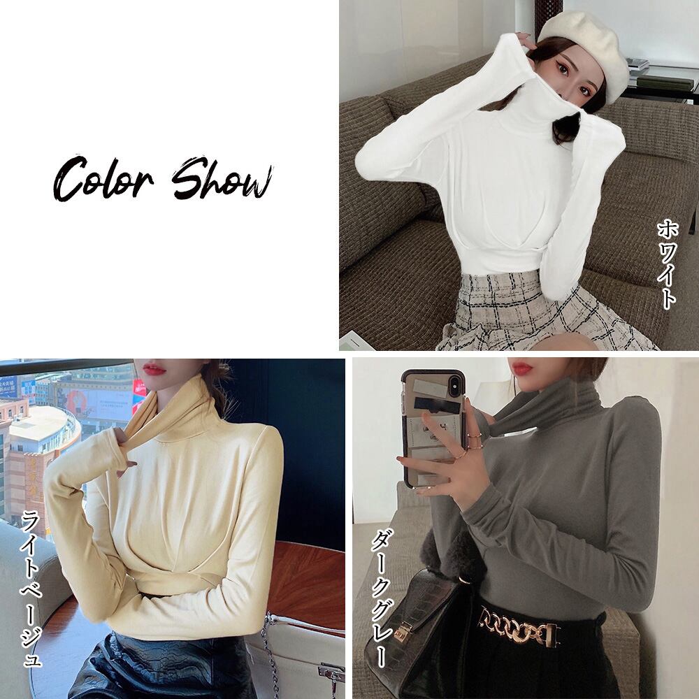 レディース ハイネック インナートップス ピーチスキンタッチ フロントタック 長袖 tシャツ セクシーカットソー