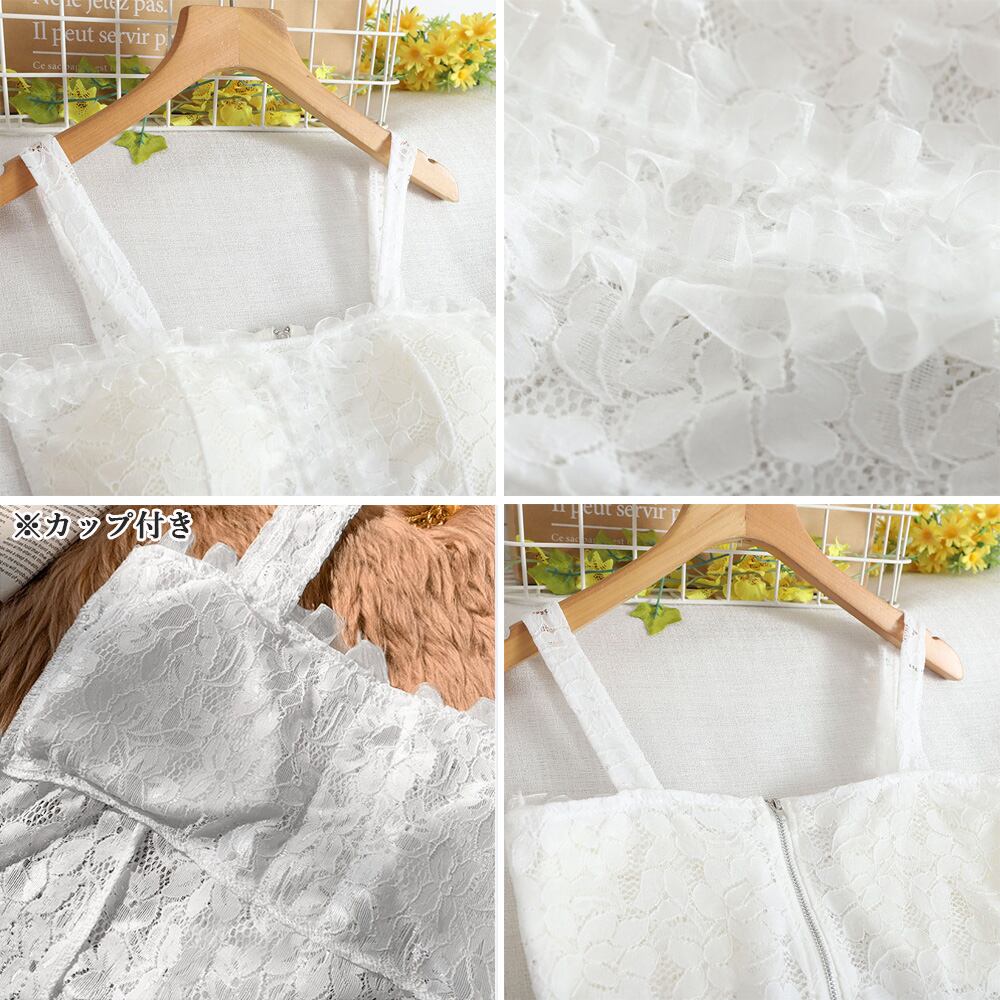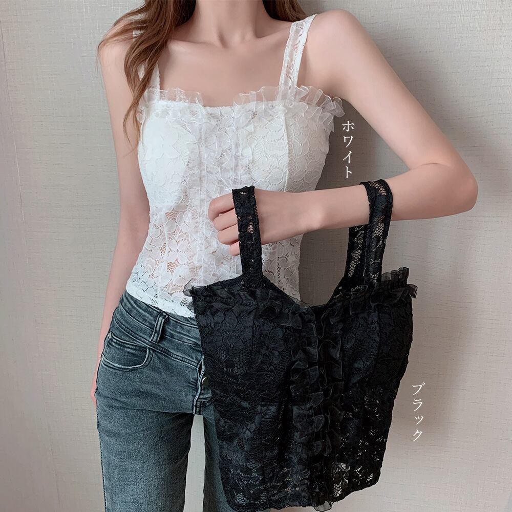 華やかレースキャミ 背中見せベアトップ 透けインナーキャミ