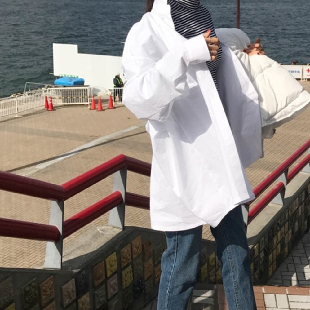 ゆったり レディース ワイドシャツ 長袖 カーディガン 胸ポケット付き オーバー ボタン シルエット 通勤 通学