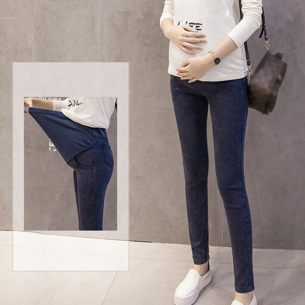 デニムスキニー レディース ウエスト調整 マタニティウェア ボトムス お腹カバー マタニティパンツ アジャスター付き