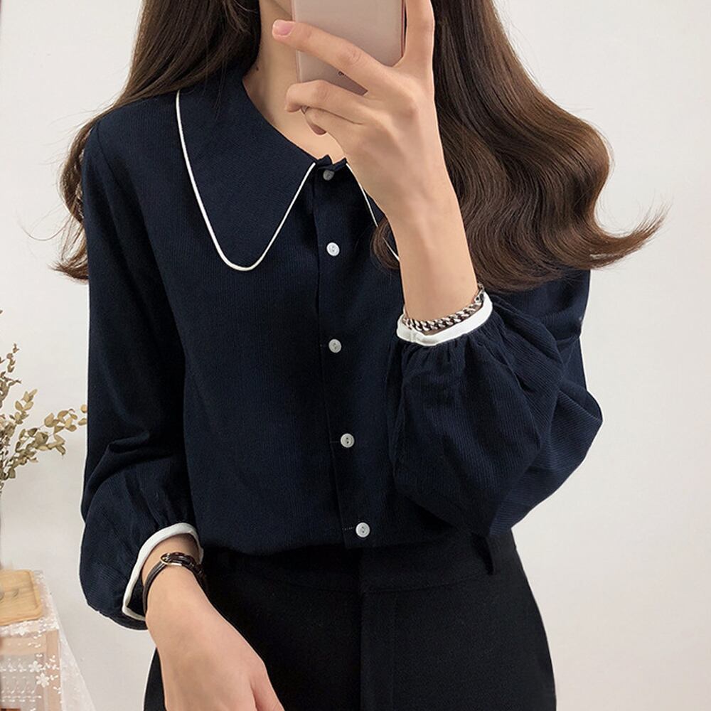 ブラウス 丸襟 パイピング シャツ 通勤