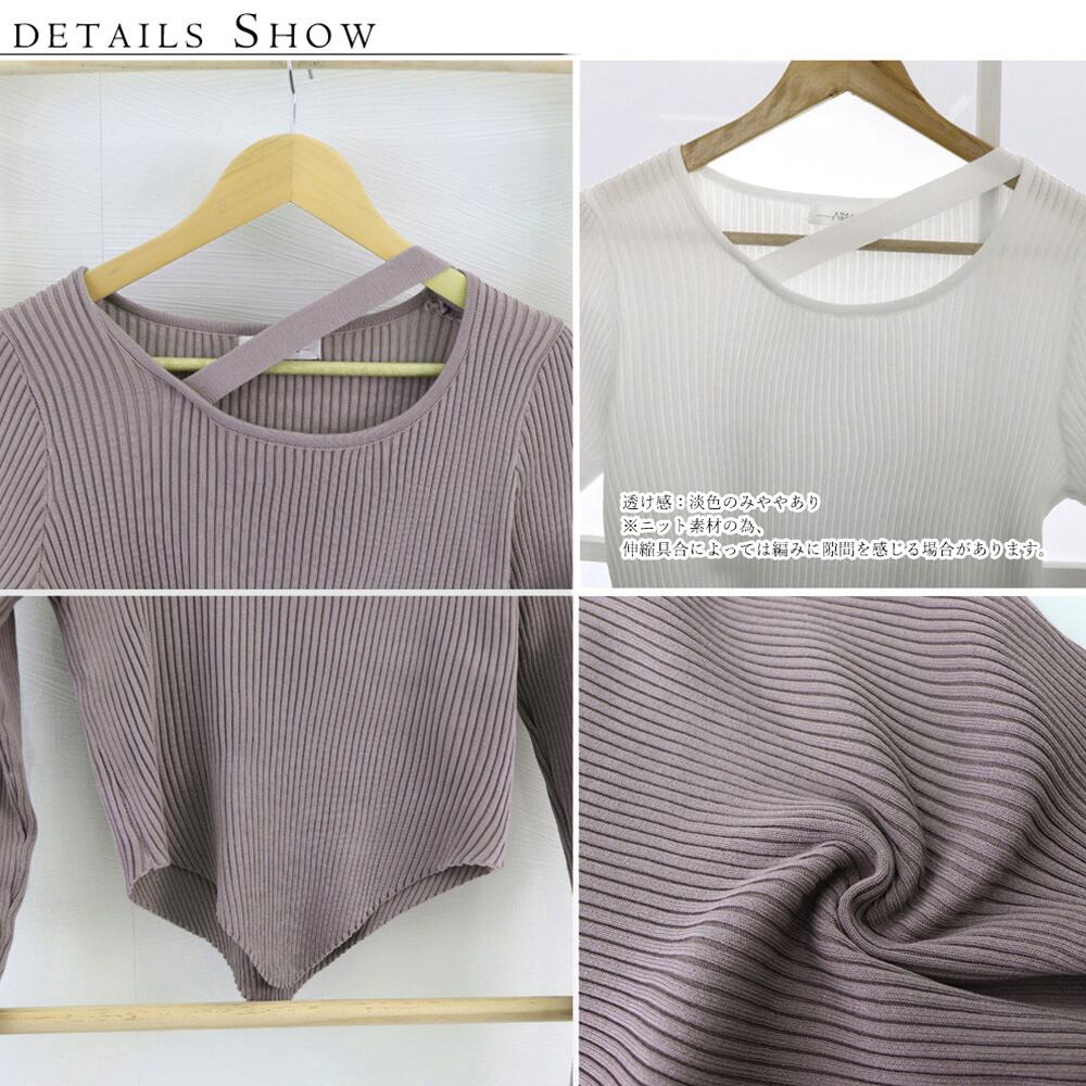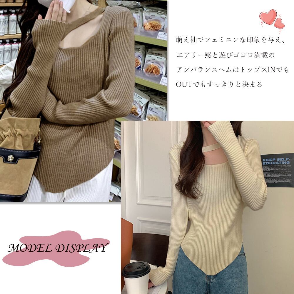 ユニークなチョーカー風Uネックでデコルテを美しく魅せ、ヘルシーな色気を醸し出すリブニットトップス