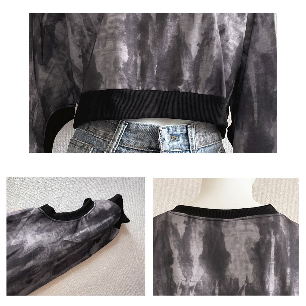 カジュアルなストリート系へそ出しの絞り染め長袖Tシャツ