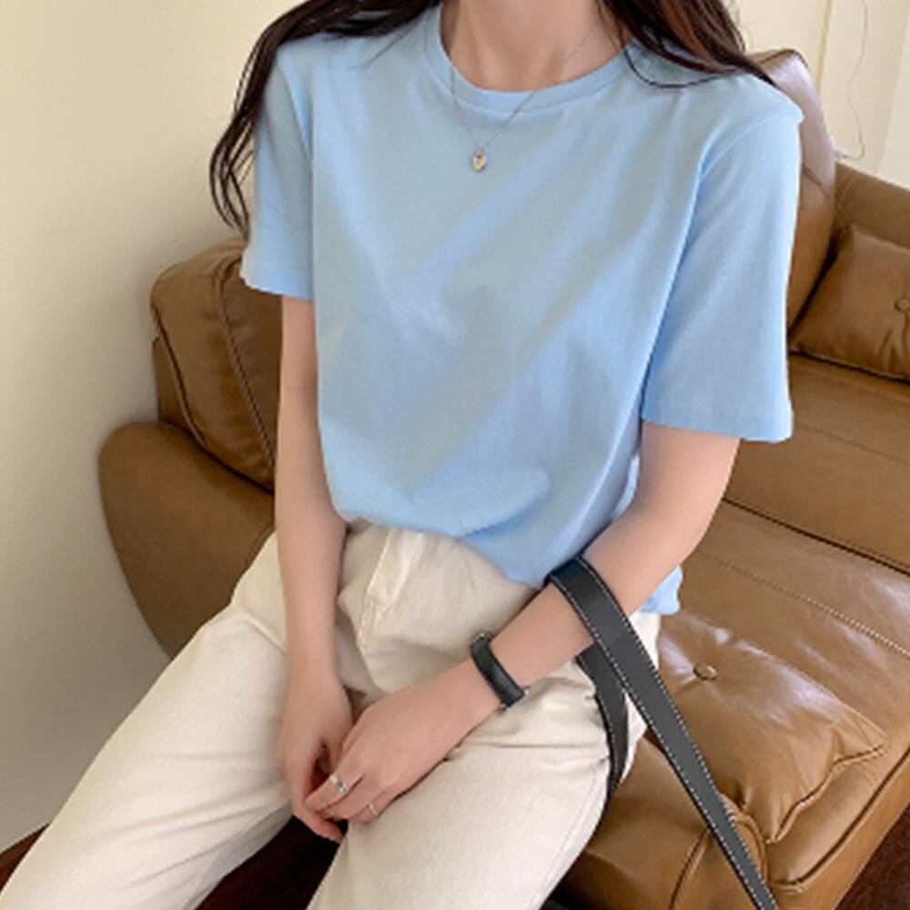 クルーネック Tシャツ 半袖 ベーシック トップス 大人カジュアル カットソー コットン 薄手 夏服 オルチャン 14色