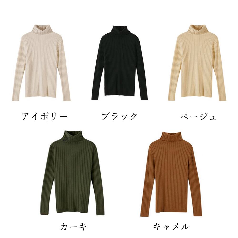 レディース ニットソー 着やせニット 細見 おしゃれ 長袖ニット ハイネック セーター 無地 シンプル 秋冬 韓国風ニット