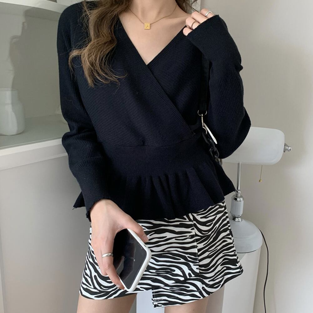 首元はVネックで、顔周りをスッキリと。さらっとした柔らかなニットトップス