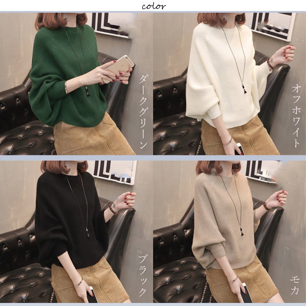 ドルマンニット レディース セーター ゆったり リブニット トップス 無地