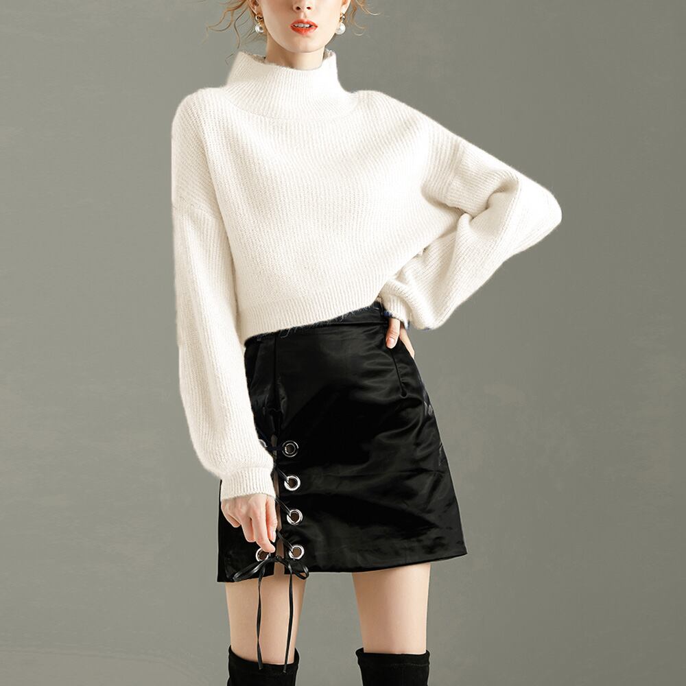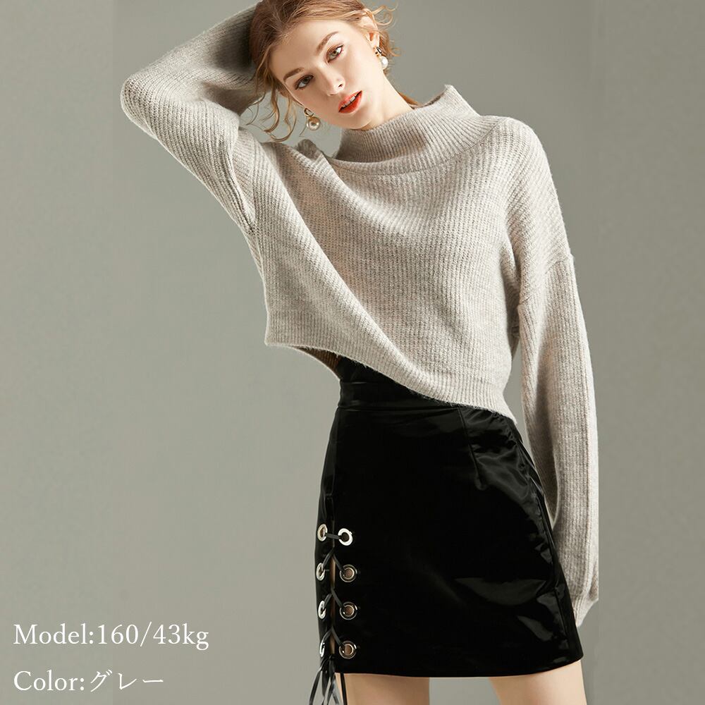 ニットセーター レディース プチハイネック ショートセーター バルーンスリーブ