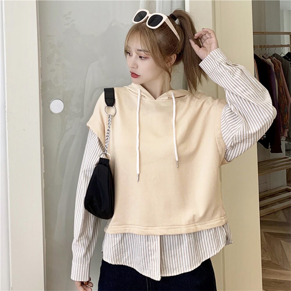 ドッキング トップス レディース 春秋 薄手パーカー 重ね着 シャツトレーナー