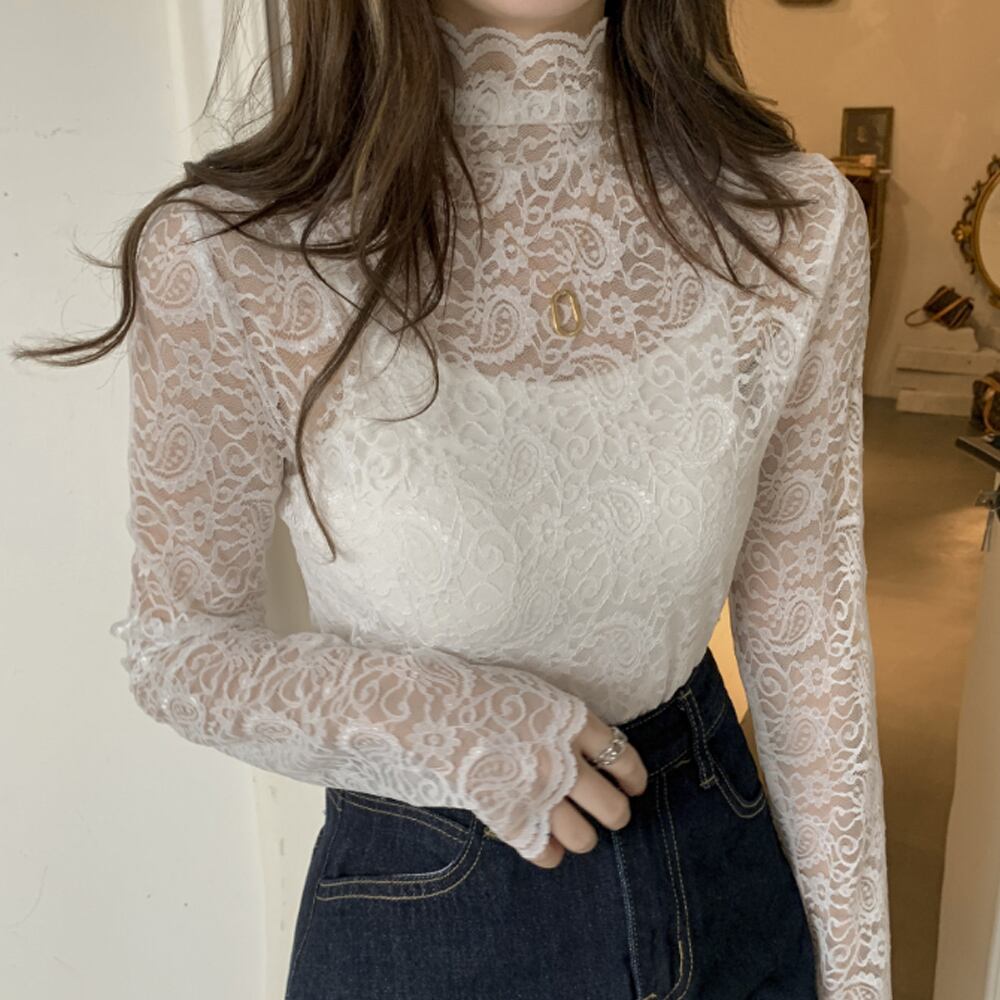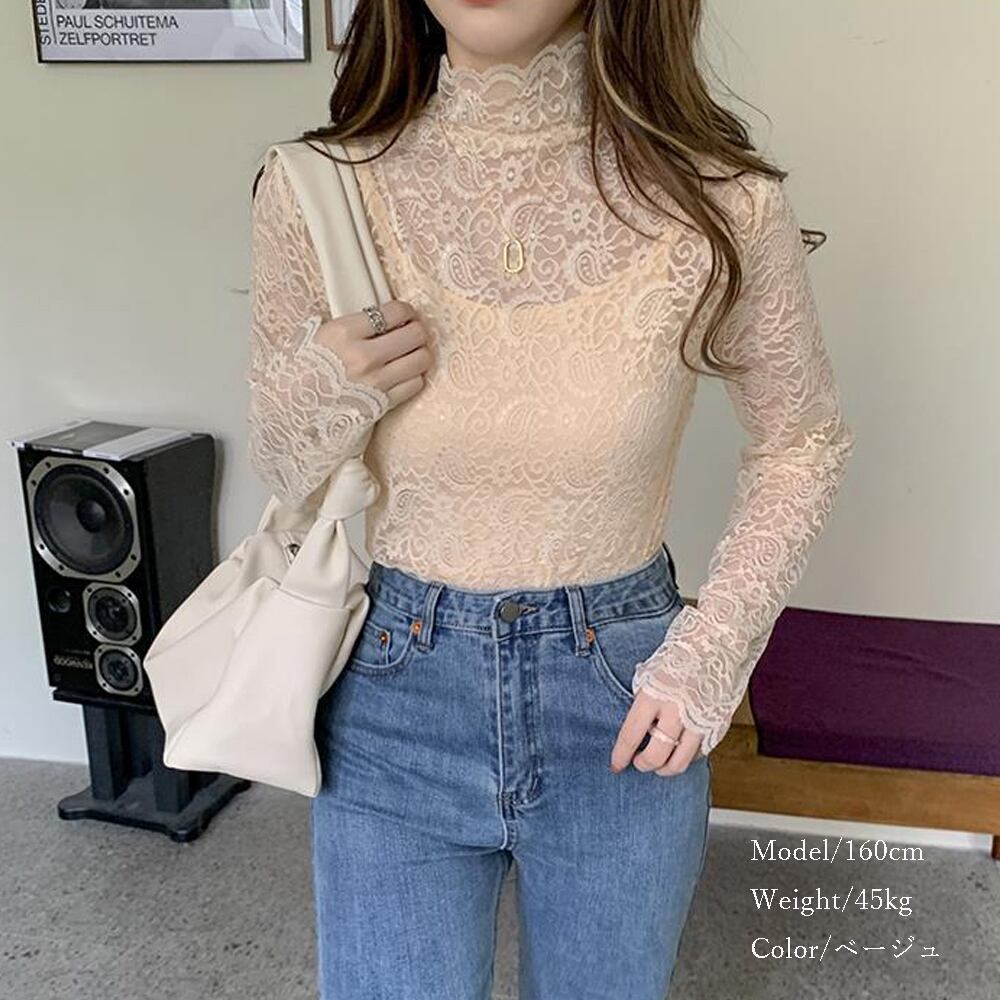 総レース ブラウス レディース シースルー トップス ペイズリー柄 ハイネック