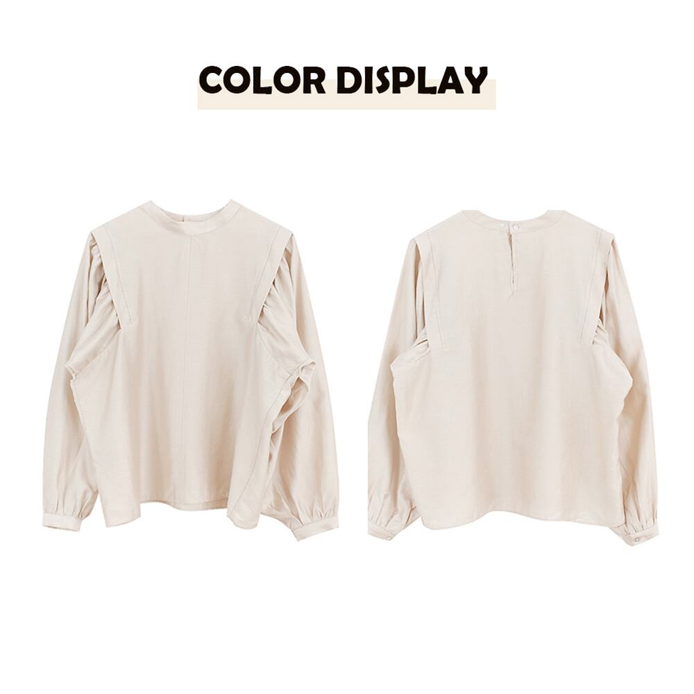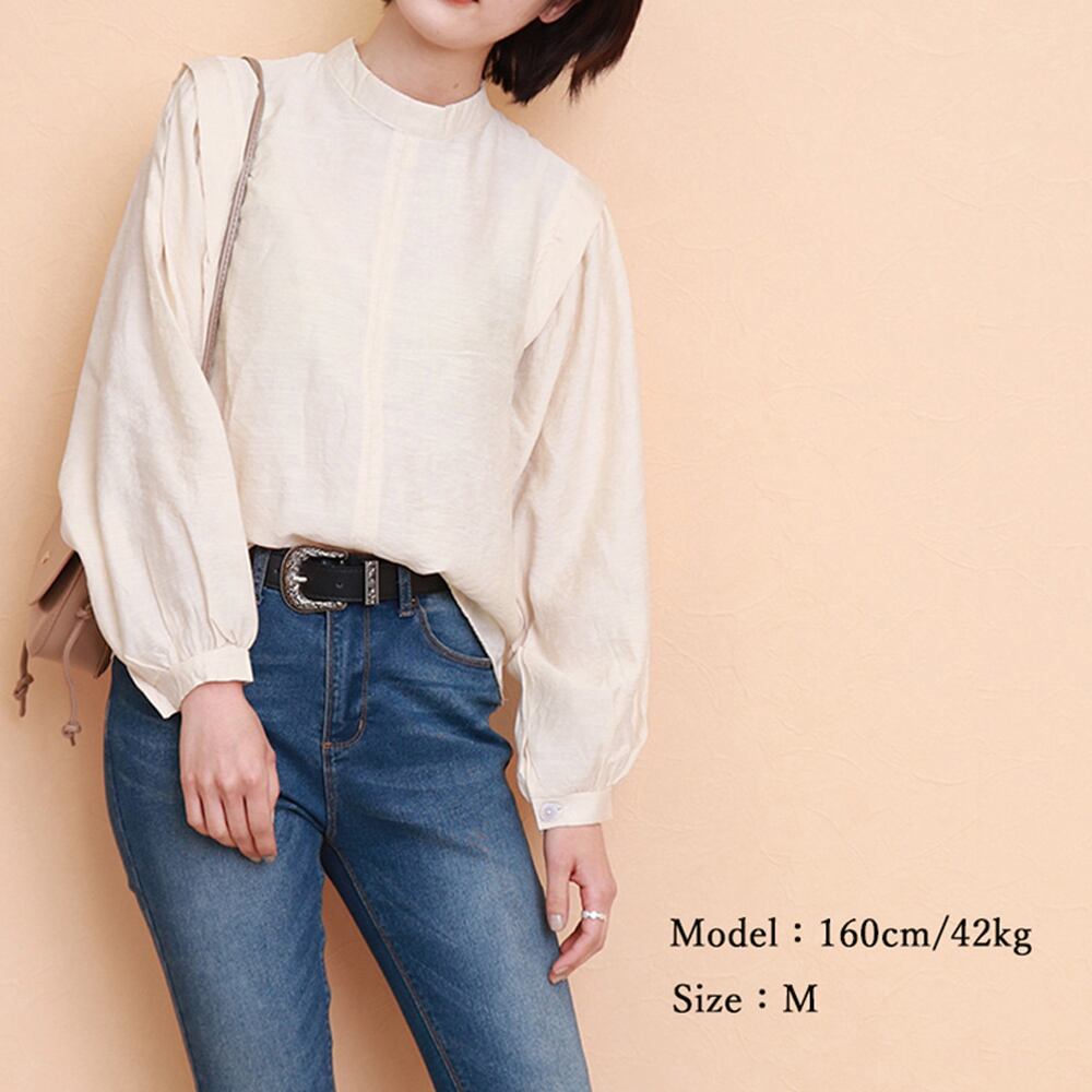 スマートな印象のパフスリーブスタンドカラーシャツブラウス
