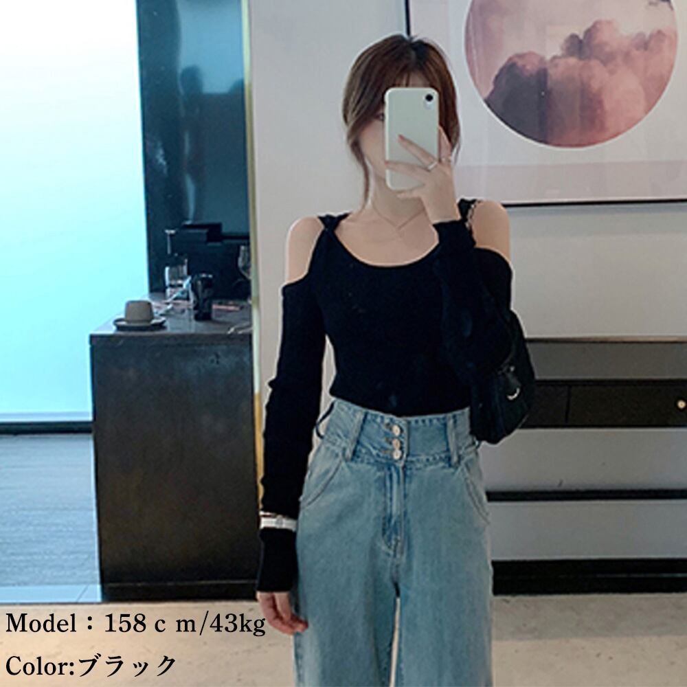 ニットトップス 肩出し レディースUネック 長袖ニットソー おしゃれ