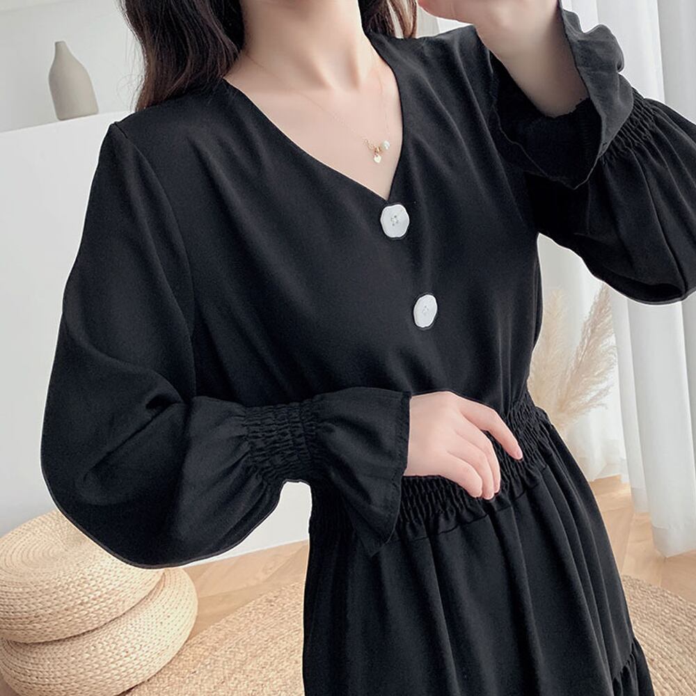 ふわっとしたボリューム感があり、着るだけで華やかな印象になるVネックティアードワンピース
