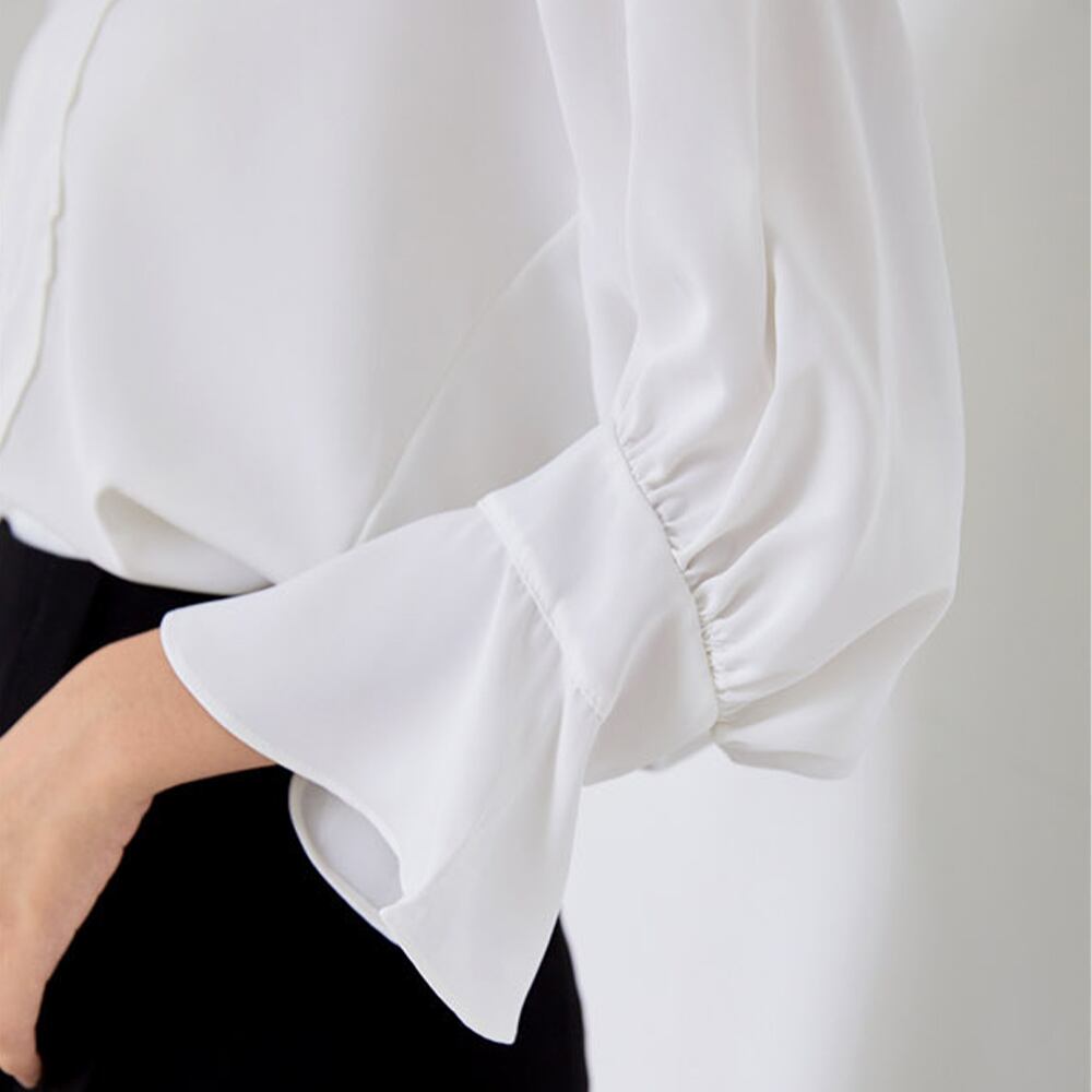 デコルテのきれい魅せができるバンドカラースキッパーシャツ