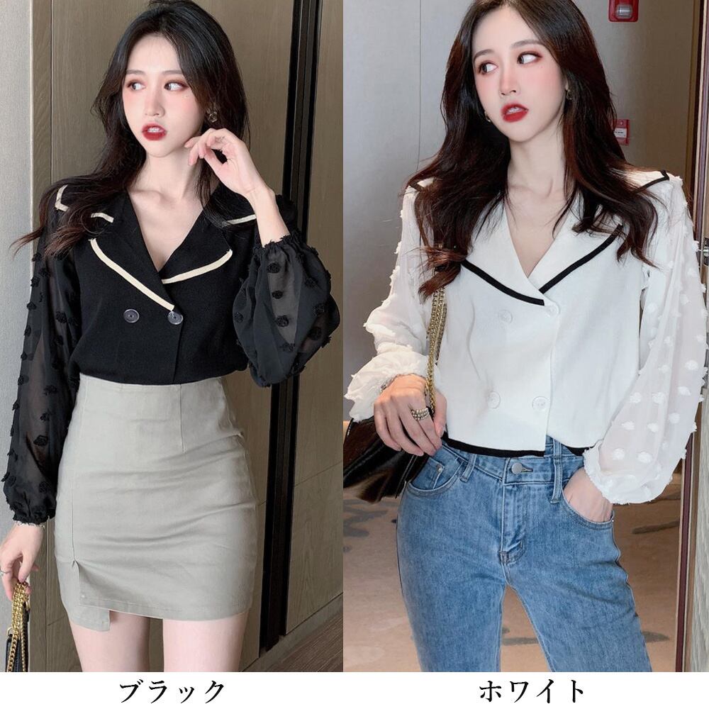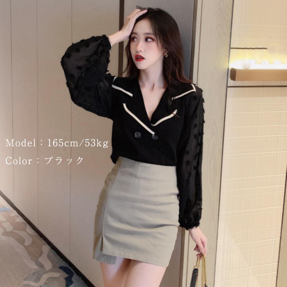 ニット切り替え シャツブラウス レディース Vネックシャツ ダブルブレスト