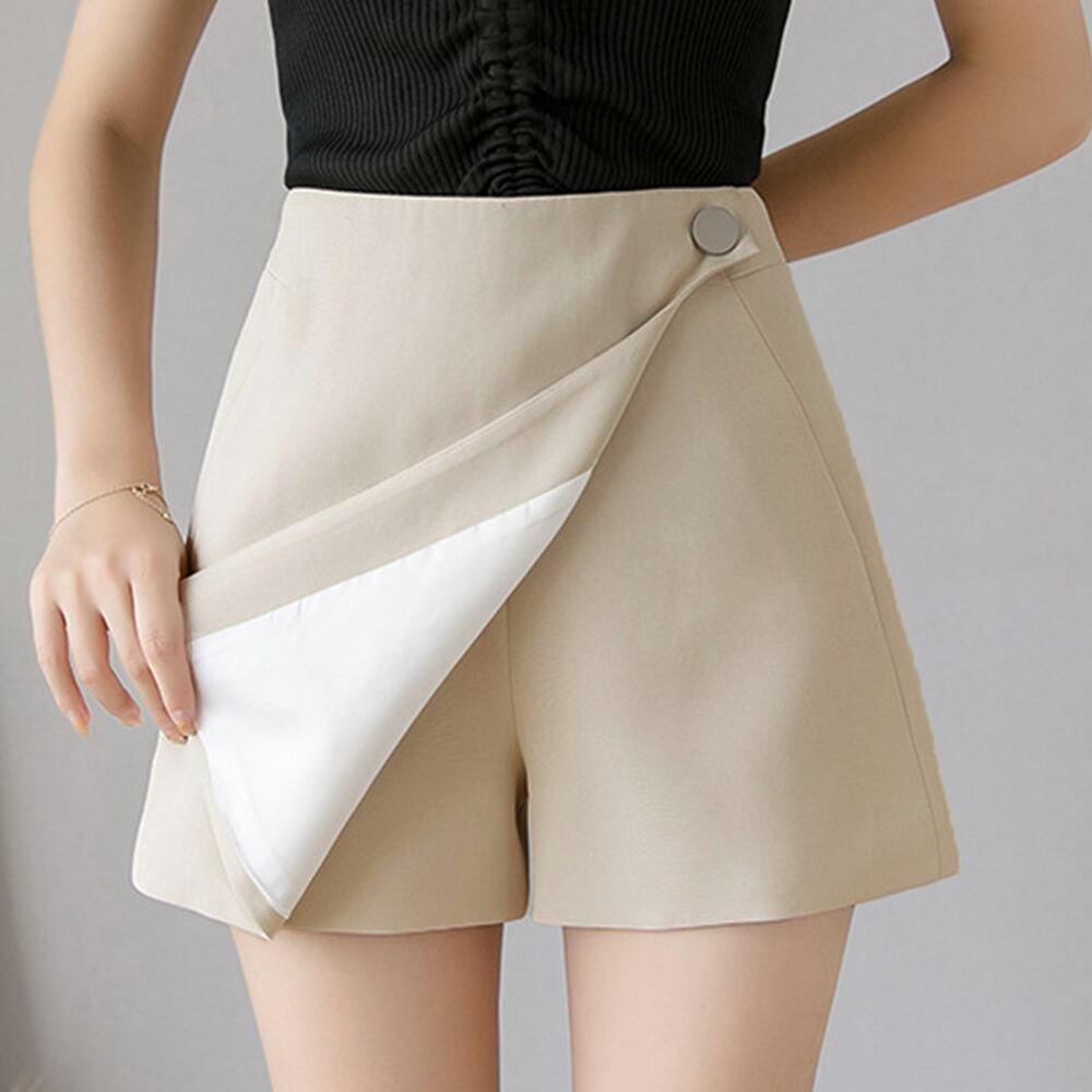 キュロット ミニスカート 見せパン付き ハイウエスト ショートパンツ 台形 春 美脚 短パン 女性 黒 韓国ファッション お洒落 可愛い