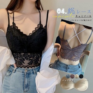 総レースキャミソール Vネック チラ見せ インナー パッド付き ショート丈