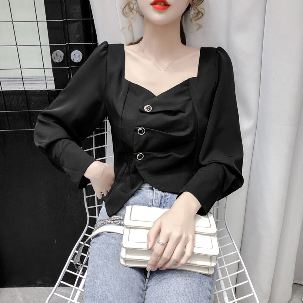 アシンメトリーデザイン シャツ ブラウス レディース 長袖 韓国ファッション