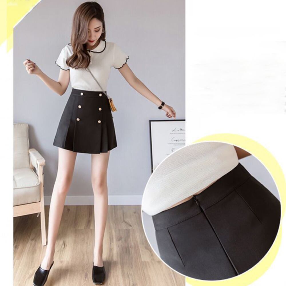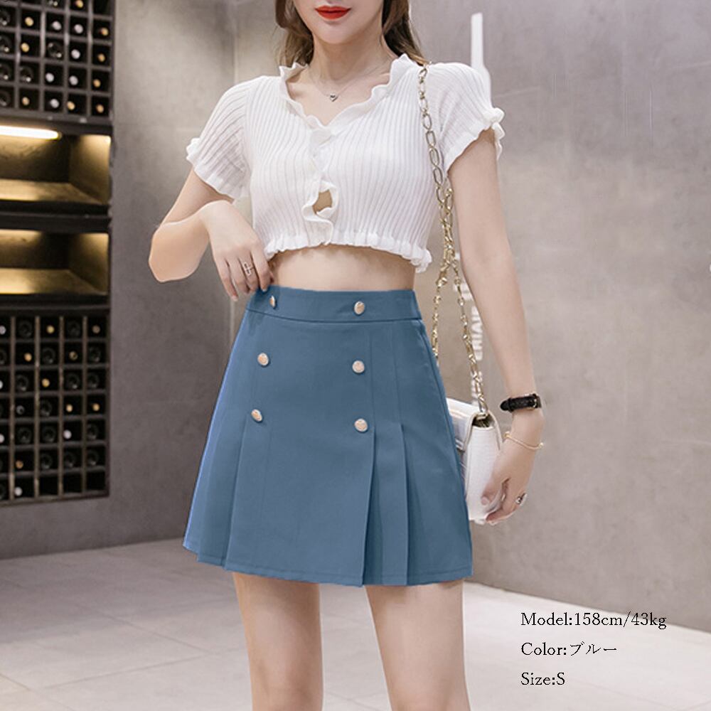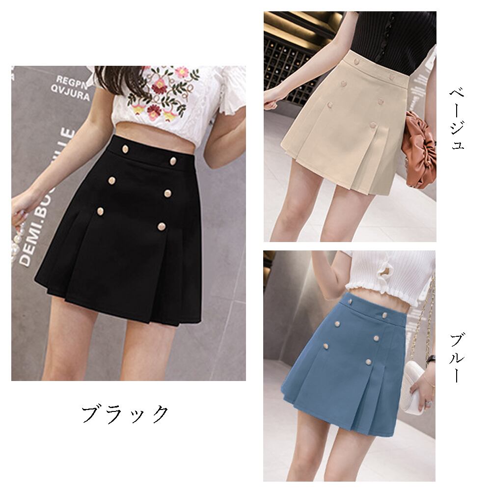 スカート 膝上 ボダン ハイウエスト 韓国 Aライン ボトムス インナーパンツ付き スカート 台形 着やせ ボトムス タイトスカート無地