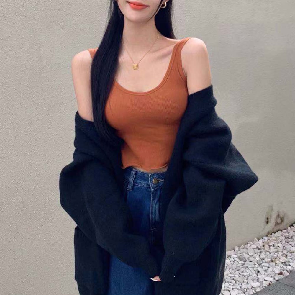 リブニット 重ね着 韓国ファッション インナー 肌見せ