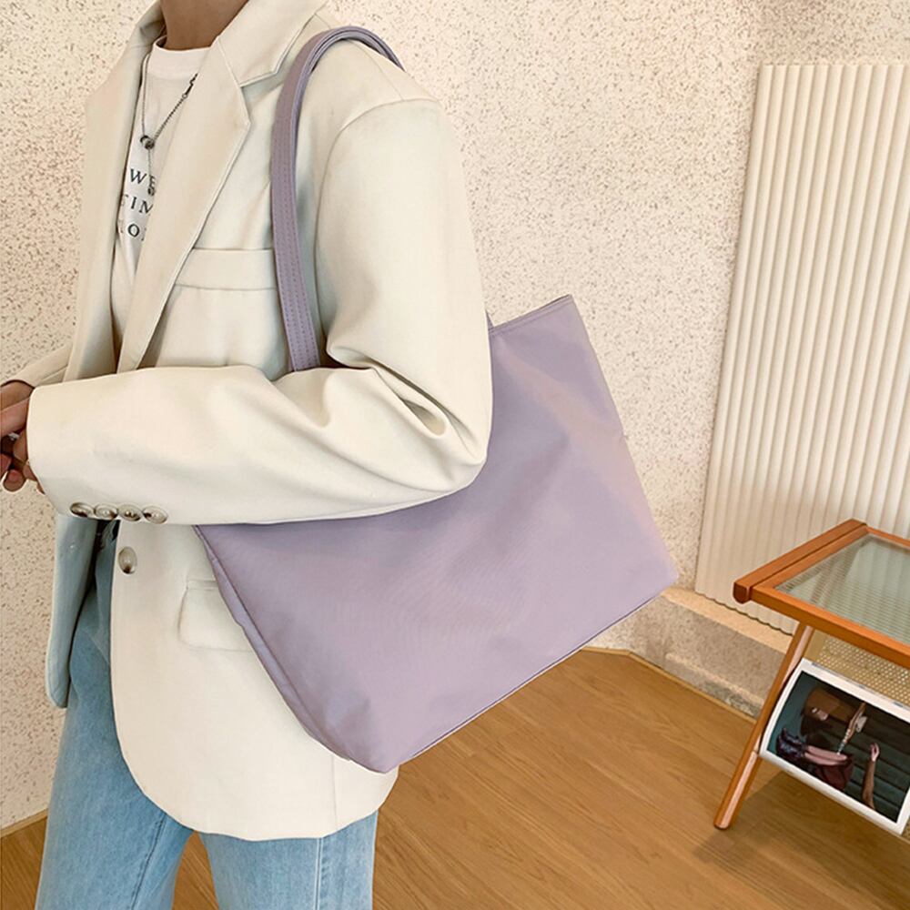 ハンドバッグ ロゴ入り A4対応 肩掛けバッグ 軽量 無地 手提げカバン 韓国風 ファスナー付き マザーズバッグ 大きめ