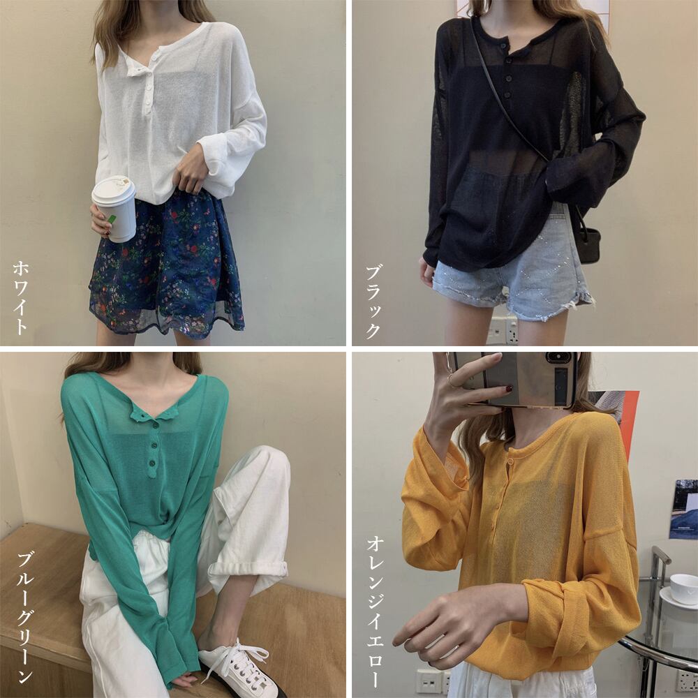 レディース 紫外線対策 ゆったり シアートップス フロントボタン ドロップショルダー透け感 薄手 プルオーバー