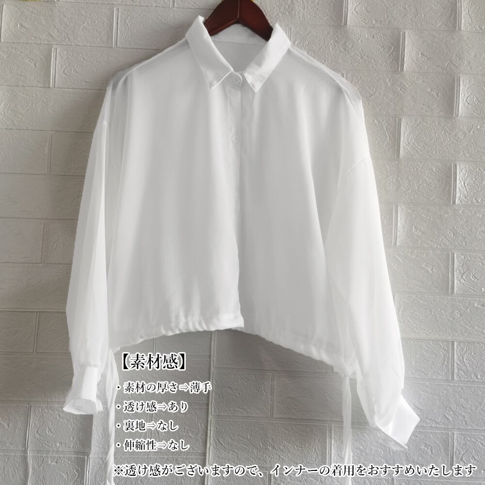 レディース 長袖 クロップド丈 シャツ 紫外線対策 ショート丈トップス 無地 日焼け対策 薄手ブラウス 透け感