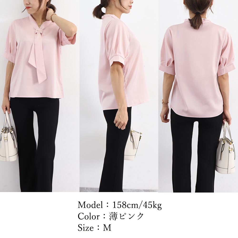オフィス ブラウス 夏服トップス韓国風 リボンブラウス上品
