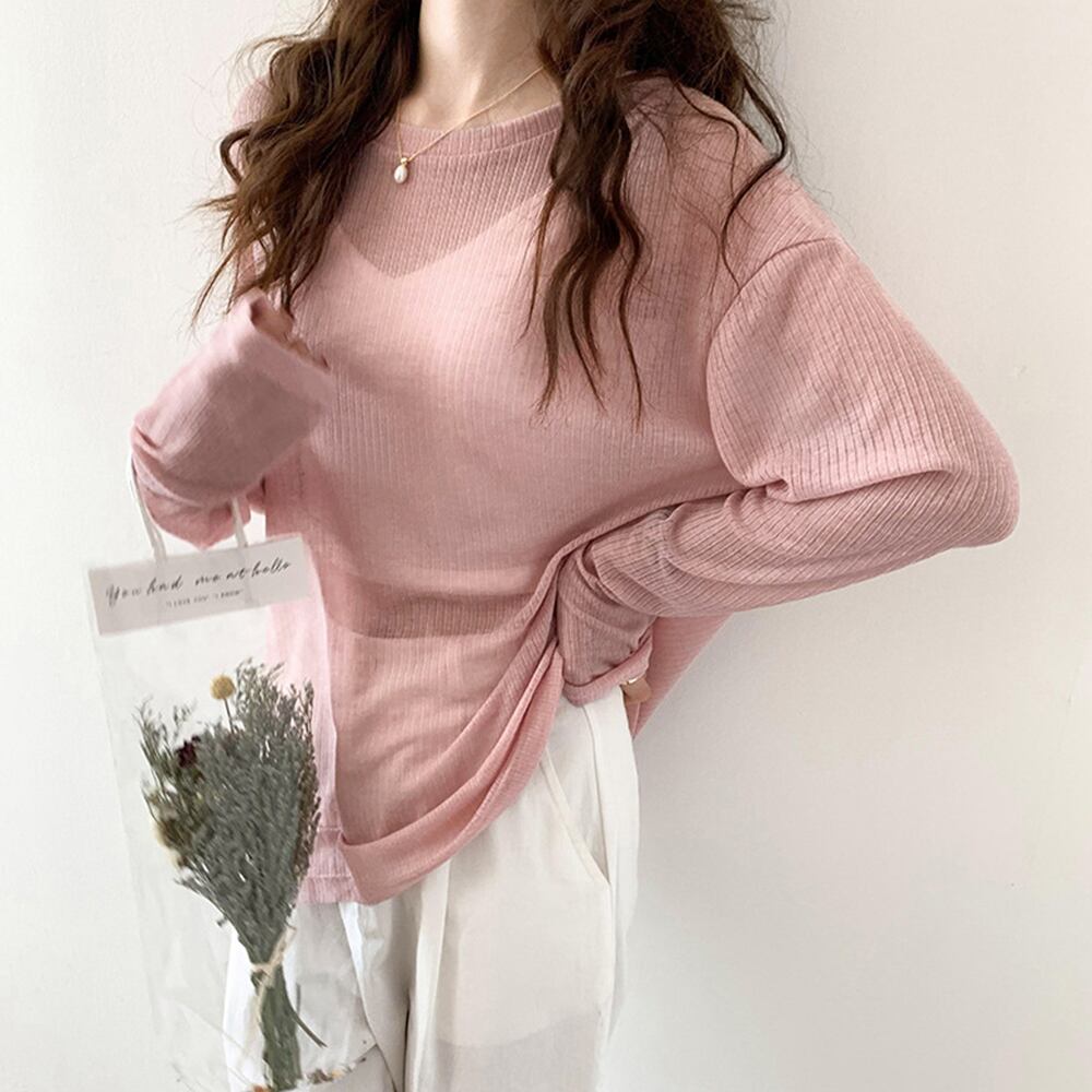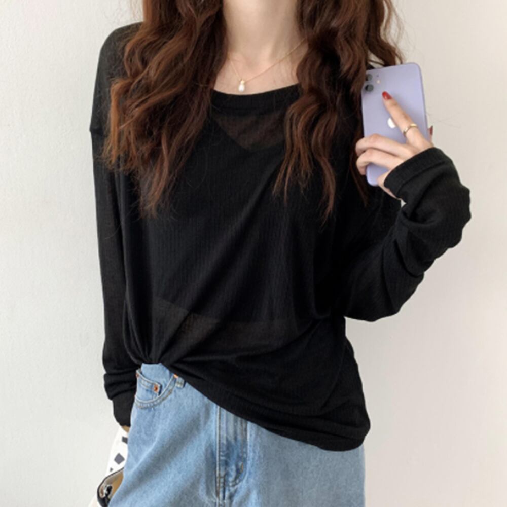 長袖トップス春秋夏 カジュアルブラウス 薄手シアーセーター