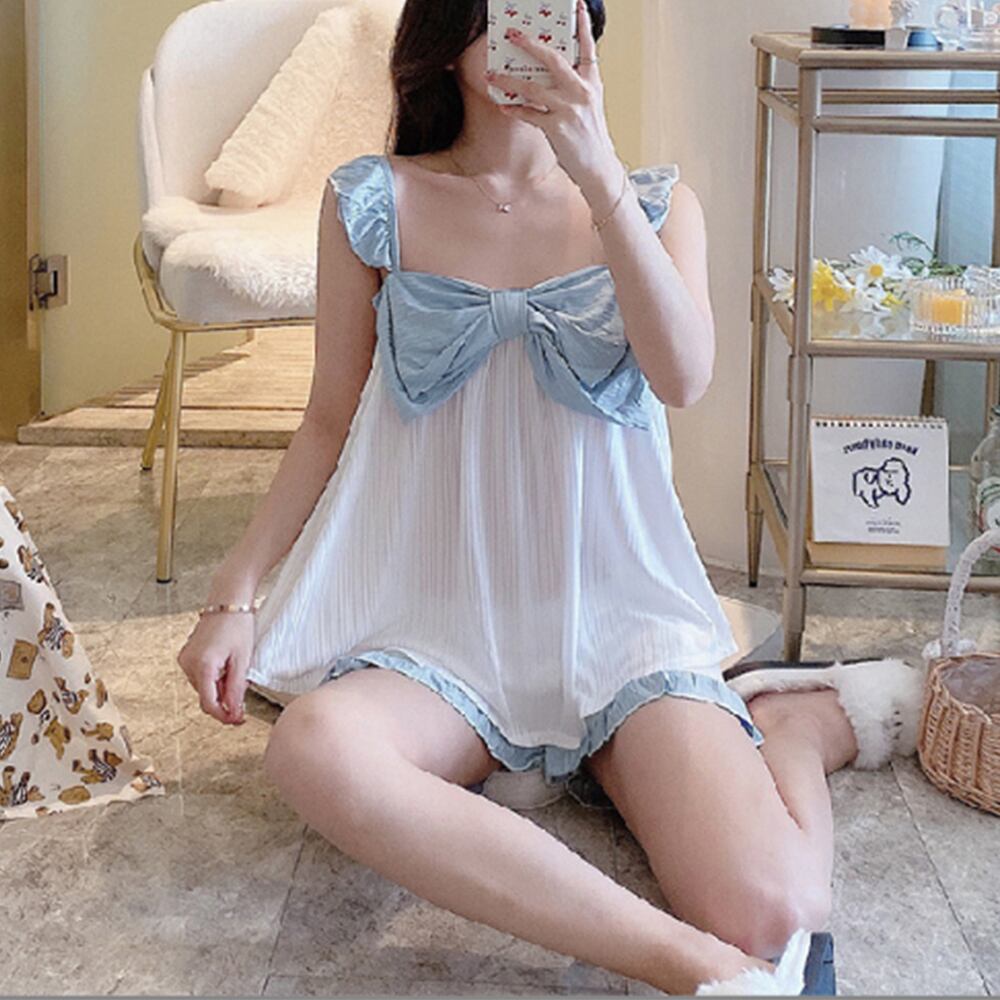 夏 パジャマセット 大きいリボンキャミソール ショートパンツ 大人可愛い ツーピース 寝間着 ルームウエア ナイトウエア